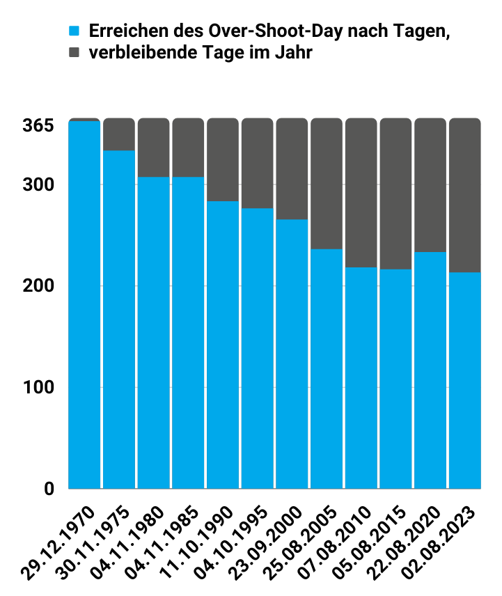 The numbers are frightening: While the world had already used up an entire year's worth of resources on average by August 2nd of this year, in Germany we needed the equivalent of three Earths by May 4th. Since it was first recorded in 1970, Earth Overshoot Day has come about three days earlier each year. Although the global COVID-19 pandemic has temporarily slowed things down, the trend is still negative.